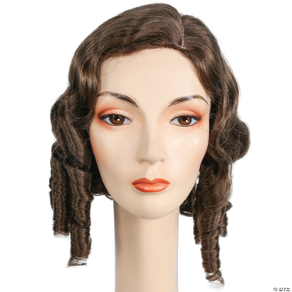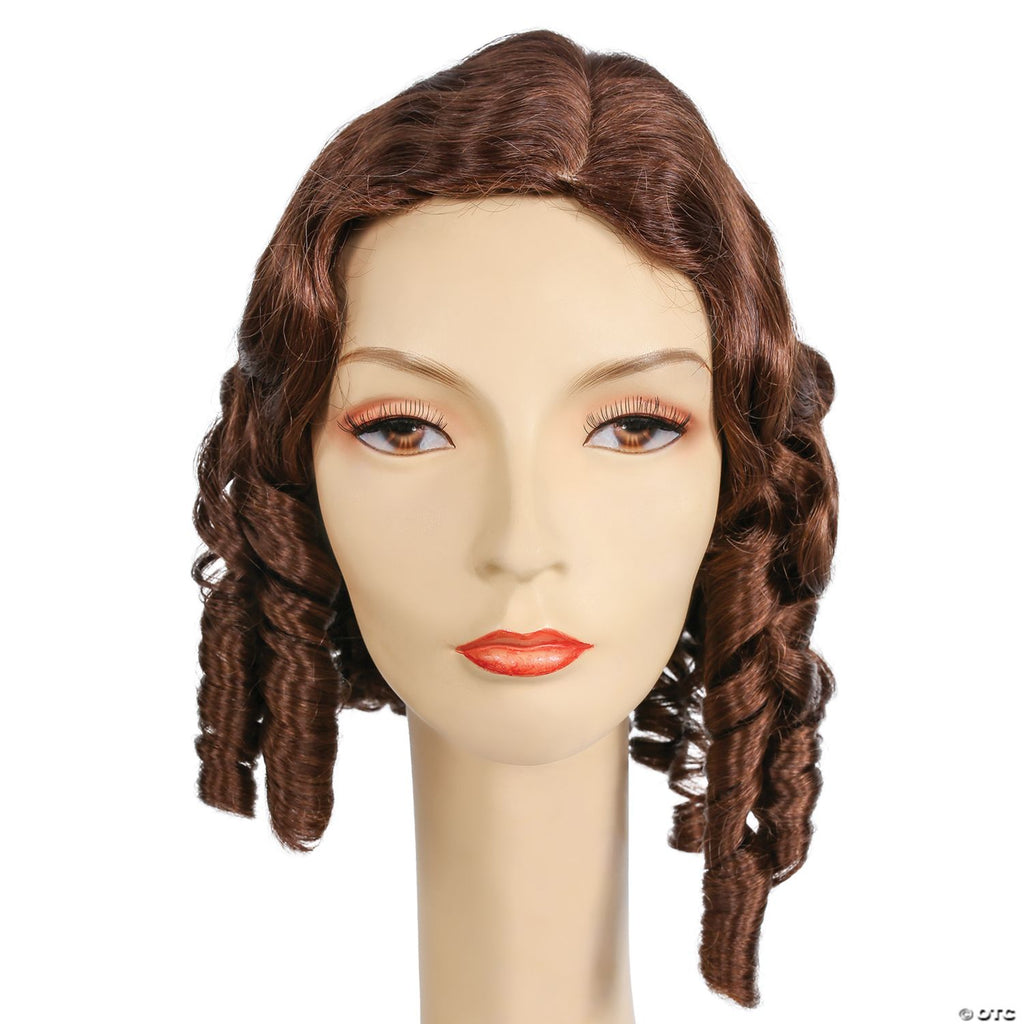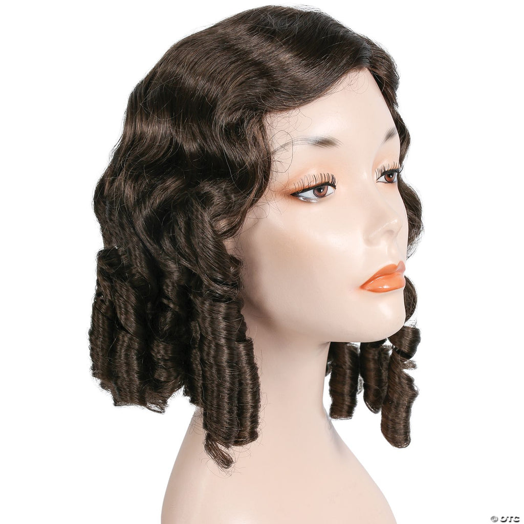 Traditional 1800's wig with smooth waves at the crown that end in below-the-chin ringlets. Good for Little Women characters medieval maids many more. Skin Part.
